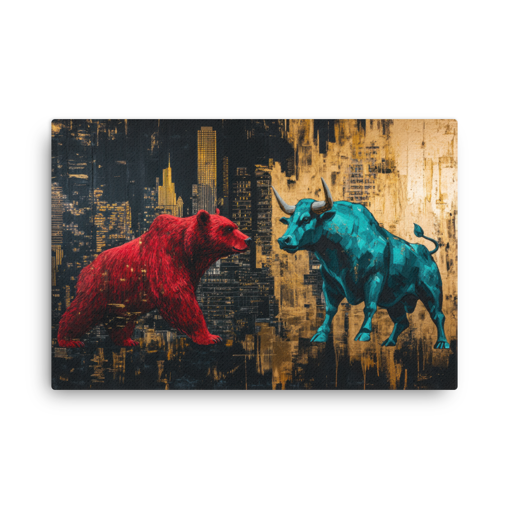 Unsere hochwertigen Leinwände, einschließlich "Bull vs Bear Clash", sind auf einem stabilen Holzrahmen gespannt und haben eine 2 cm Dicke, die für eine langlebige und stilvolle Präsentation sorgt. Jedes Kunstwerk wird mit Sorgfalt und Präzision gedruckt, um brillante Farben und feinste Details zu gewährleisten.