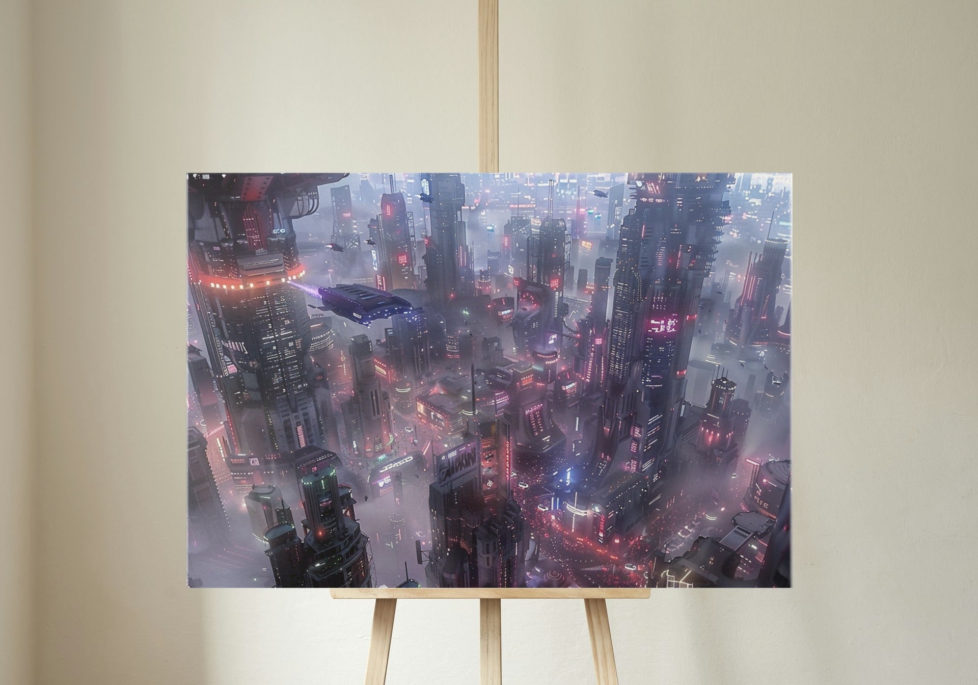 Ob für dein Wohnzimmer, Schlafzimmer oder deine persönliche Meditations-Ecke – "Cyberpunk Cityscape" fügt sich nahtlos in jede Umgebung ein und unterstützt dich dabei, einen Ort der Ruhe und Balance zu erschaffen.