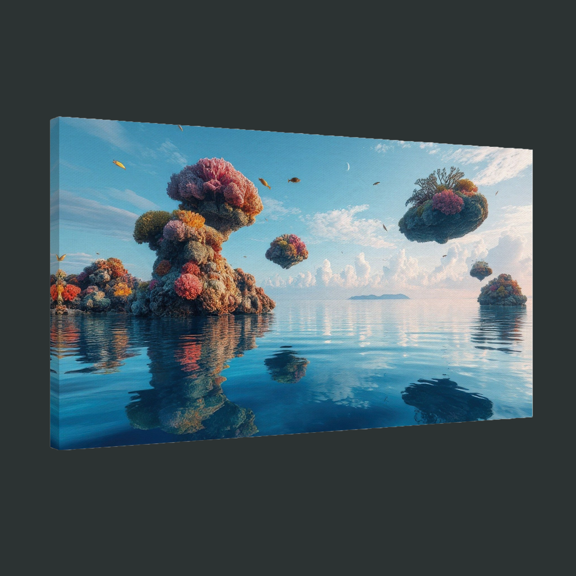 Die 2 cm dicke Galerie-Bespannung verleiht "Dreamy Isles" eine beeindruckende Tiefe und macht es zum perfekten Begleiter für deine Meditationsmomente.