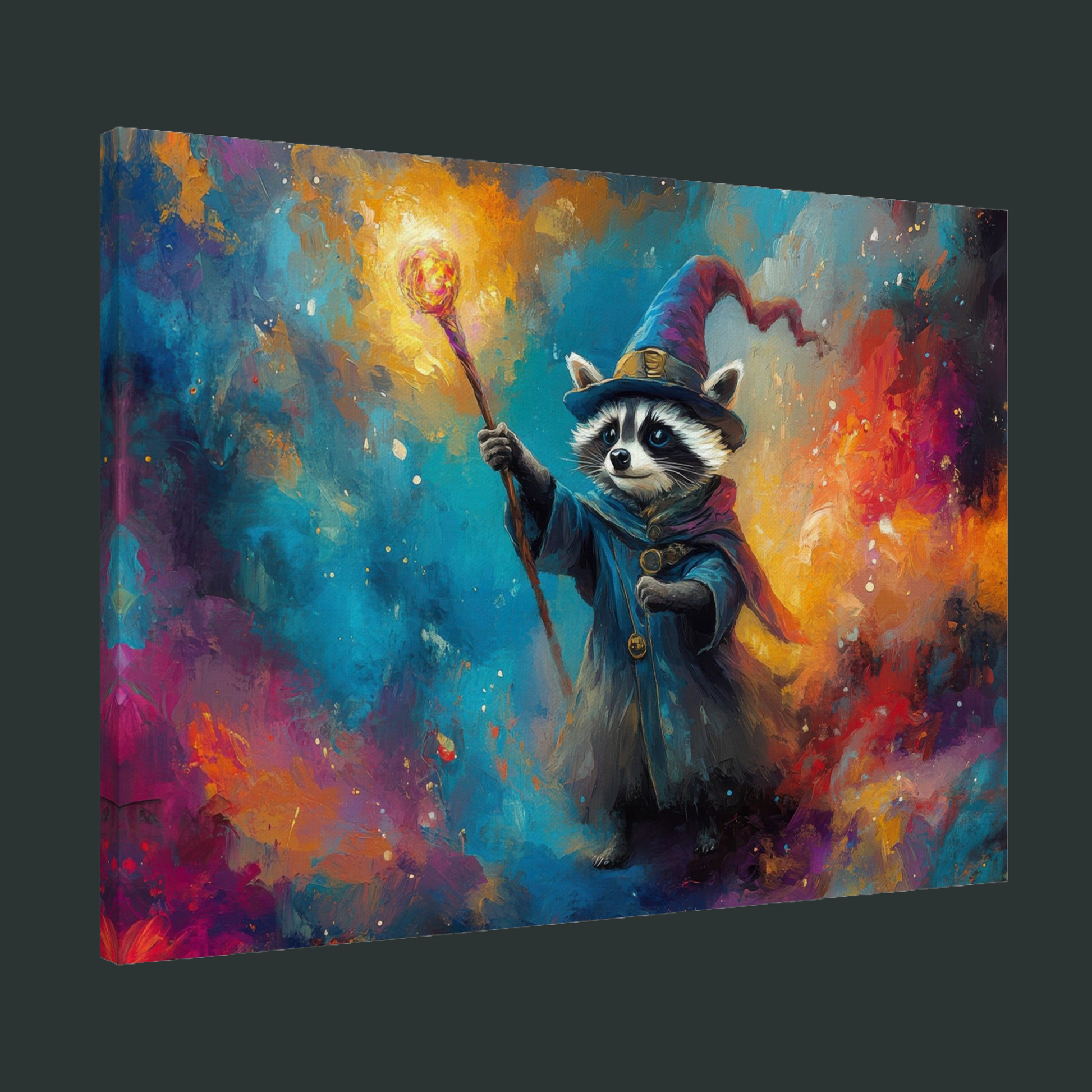 Die 2 cm dicke Galerie-Bespannung verleiht "Enchanted Raccoon" eine beeindruckende Tiefe und macht es zum perfekten Begleiter für deine Meditationsmomente.
