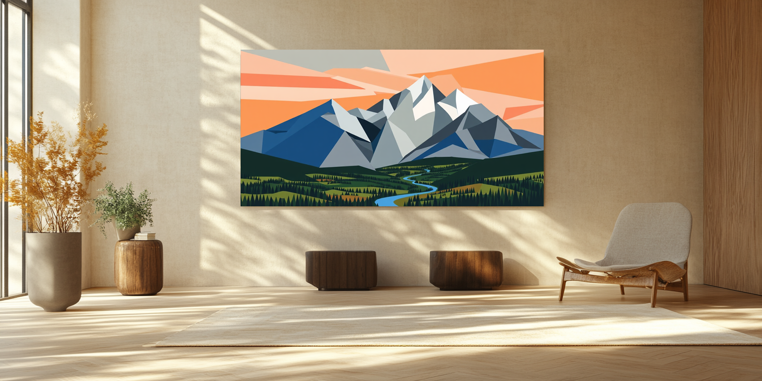 Jede unserer Leinwände, darunter auch "Geometric Peaks", wird mit höchster Präzision gefertigt. Der nachhaltige Canvas-Stoff in Kombination mit einem stabilen Holzrahmen sorgt für außergewöhnliche Qualität und eine edle Optik.