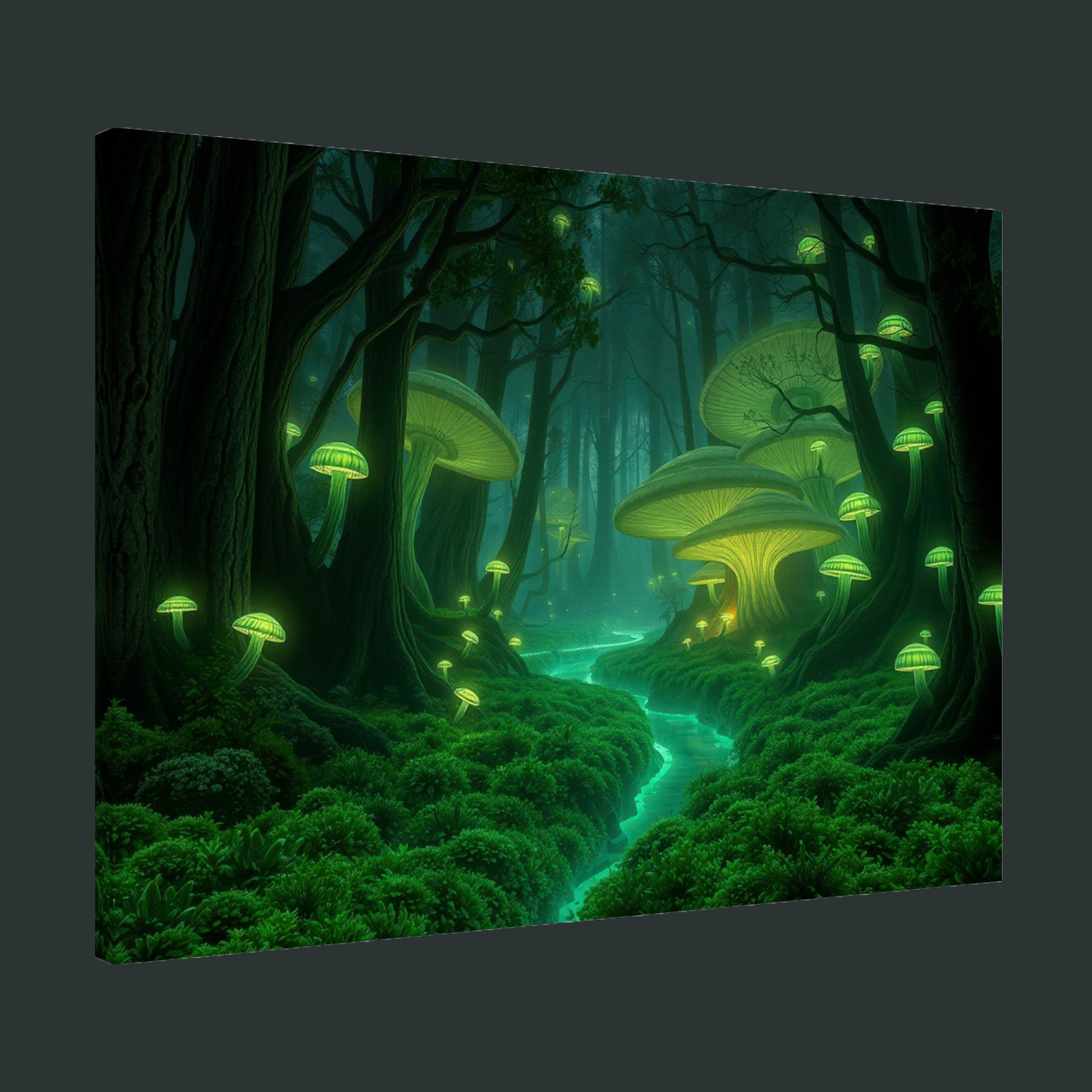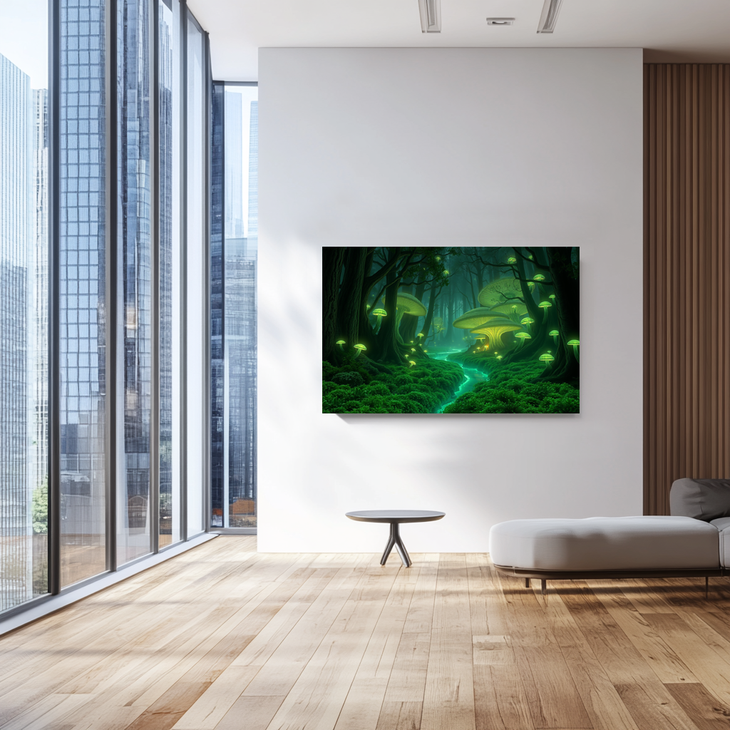 Die 2 cm dicke Galerie-Bespannung verleiht "Glowing Wilderness" eine beeindruckende Tiefe und macht es zum perfekten Begleiter für deine Meditationsmomente.