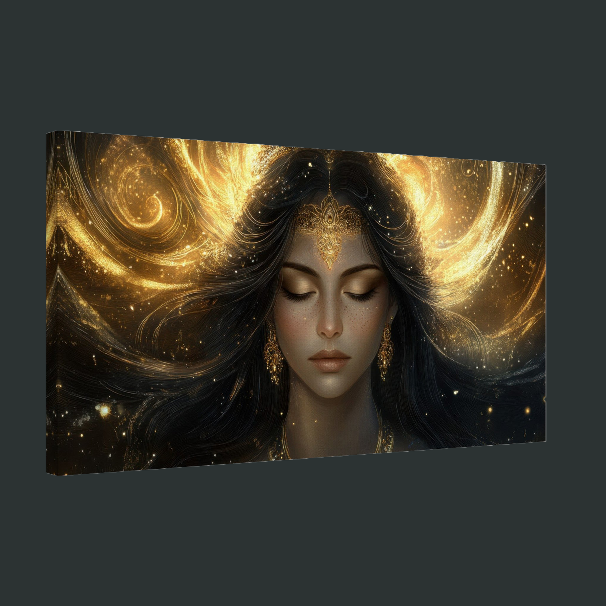 Die 2 cm dicke Galerie-Bespannung verleiht "Golden Goddess" eine beeindruckende Tiefe und macht es zum perfekten Begleiter für deine Meditationsmomente.