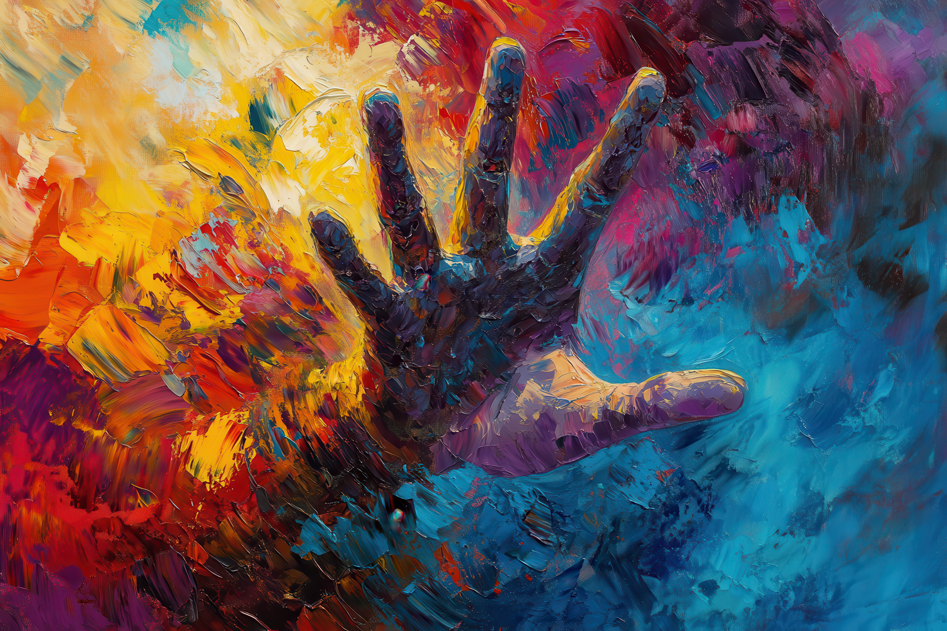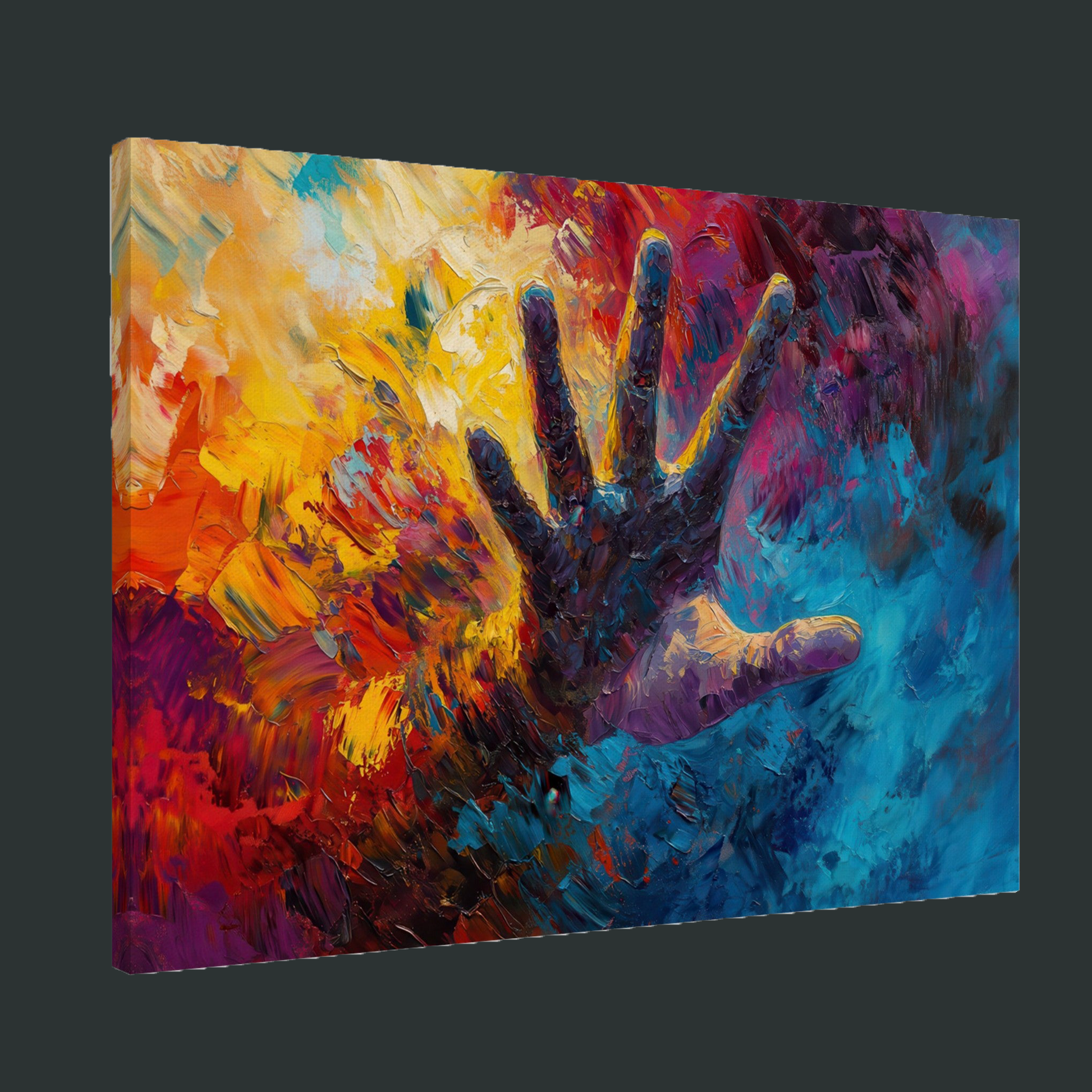 Erlebe die beruhigende Wirkung von "Hand of Creation", einer Leinwand, die nicht nur als Dekoration dient, sondern auch als Anker für deine tägliche Achtsamkeitspraxis. Inspiriert von spirituellen Symbolen und meditativer Ästhetik, bringt dieses Kunstwerk Gelassenheit und Harmonie in deinen Raum.