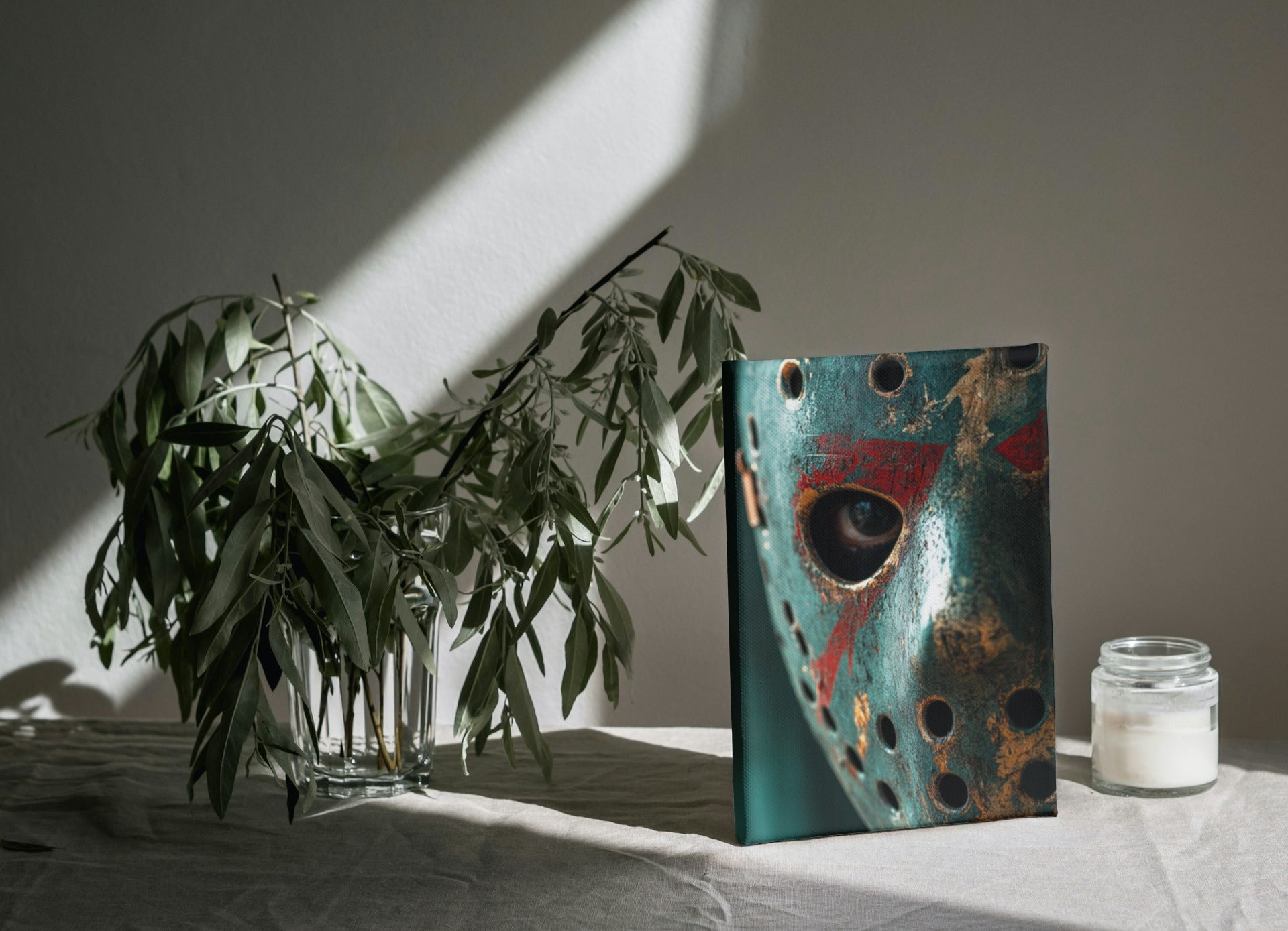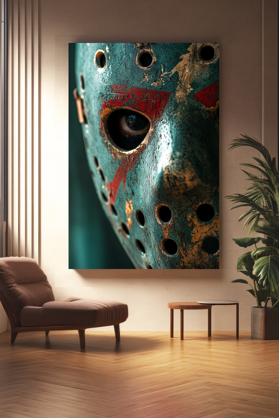 Unsere hochwertigen Leinwände, einschließlich "Hockey Mask", sind auf einem stabilen Holzrahmen gespannt und haben eine 2 cm Dicke, die für eine langlebige und stilvolle Präsentation sorgt. Jedes Kunstwerk wird mit Sorgfalt und Präzision gedruckt, um brillante Farben und feinste Details zu gewährleisten.