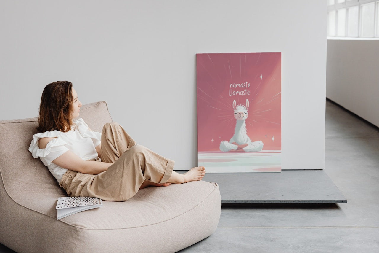 Ob für dein Wohnzimmer, Schlafzimmer oder deine persönliche Meditations-Ecke – "Llamasteeee" fügt sich nahtlos in jede Umgebung ein und unterstützt dich dabei, einen Ort der Ruhe und Balance zu erschaffen.