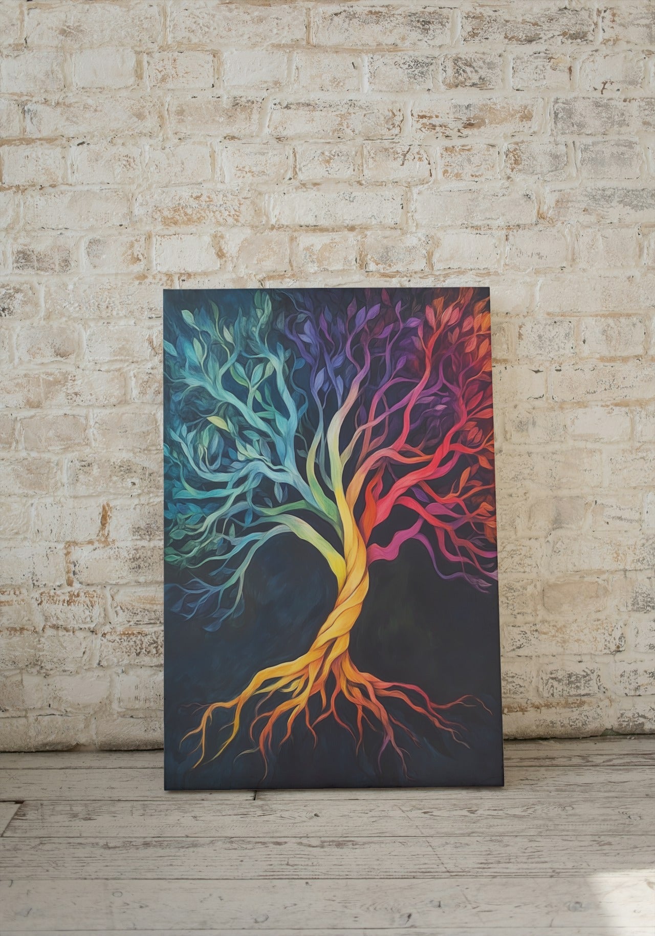 Erlebe die beruhigende Wirkung von "Roots of Serenity", einer Leinwand, die nicht nur als Dekoration dient, sondern auch als Anker für deine tägliche Achtsamkeitspraxis. Inspiriert von spirituellen Symbolen und meditativer Ästhetik, bringt dieses Kunstwerk Gelassenheit und Harmonie in deinen Raum.