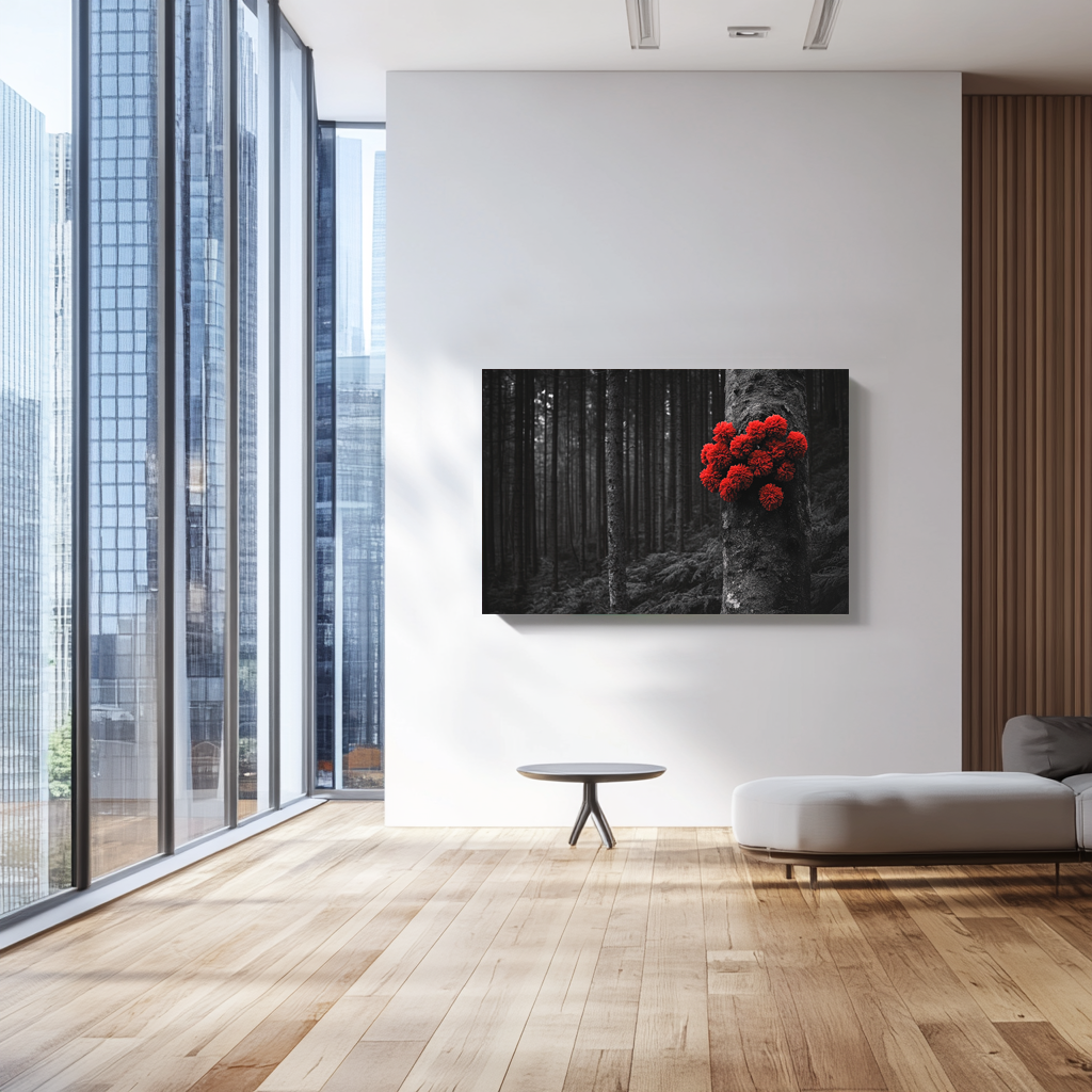 Jede unserer Leinwände, darunter auch "Scarlet Blooms in the Forest", wird mit höchster Präzision gefertigt. Der nachhaltige Canvas-Stoff in Kombination mit einem stabilen Holzrahmen sorgt für außergewöhnliche Qualität und eine edle Optik.