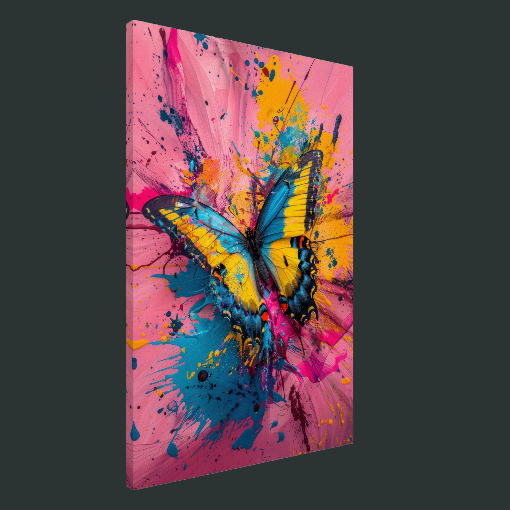 Die 2 cm dicke Galerie-Bespannung verleiht "Splattered Wings" eine beeindruckende Tiefe und macht es zum perfekten Begleiter für deine Meditationsmomente.